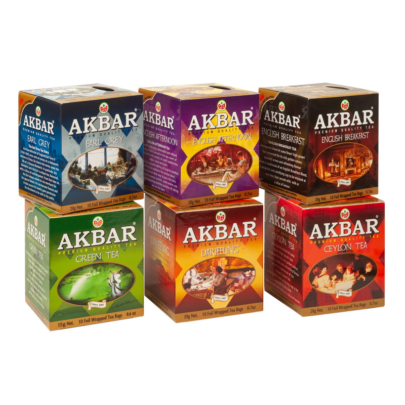 Асортимент цейлонського чаю ТМ Akbar налічує багато різних сортів чайного листа та пакування, який імпортується нами в Україну в оригінальних упаковках Виробника безпосередньо з фабрики Akbar Brothers Ltd, що гарантує свіжість, найвищу якість та оригінальність чаю. Різноманітні купажі та бездоганні смаки чаю ТМ Akbar задовольнять будь-які уподобання любителів чаювання. Придбати оригінальний чай ТМ Akbar цейлонського фасування можна в магазинах наших Партнерів, перелік в розділі сайту- ПРО НАС-. Приємного чаювання разом з чаєм ТМ Akbar!