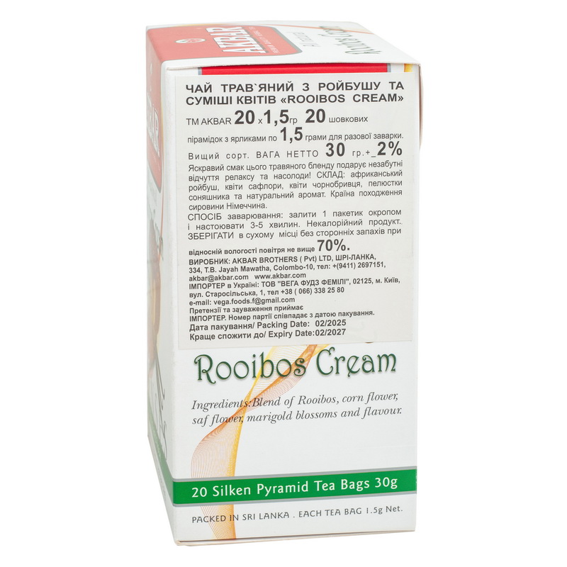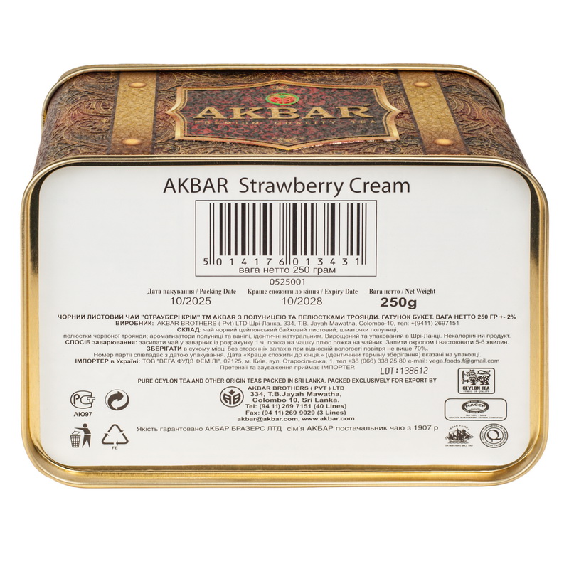 Виробник Akbar Brothers Ltd Шрі Ланка – світовий лідер з експорту цейлонського чаю вже 30 років поспіль, власник найбільшої сучасної фабрики чаю на Шрі Ланці де під суворим контролем на відповідність міжнародним стандартам проводиться повний цикл виробництва чаю ТМ Akbar від обробки чайного листа до пакування.