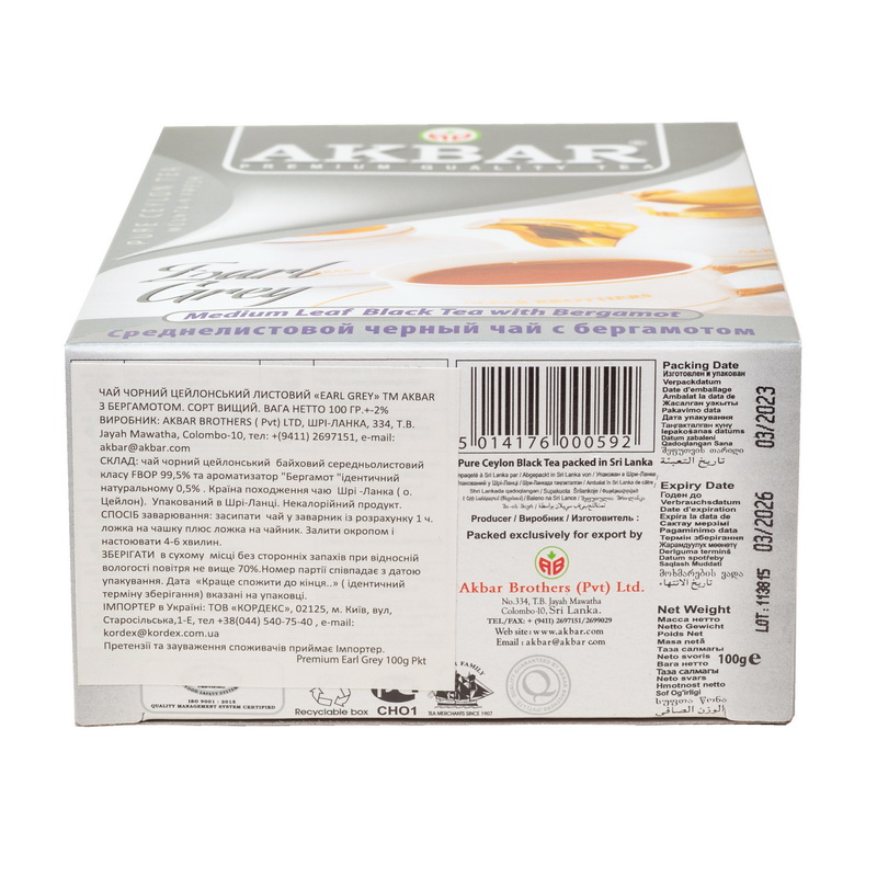 Akbar Earl Grey Gold is an elite Ceylon highland FBOP tea, characterised by a high content of tips – tea buds that give the drink a unique, rich taste, bright, golden colour, while the delicate citrus flavour and aroma of bergamot emphasise the unique taste of tea and give it exceptional delicacy. This drink is an ideal way to relieve fatigue after a busy day and adds vigour.